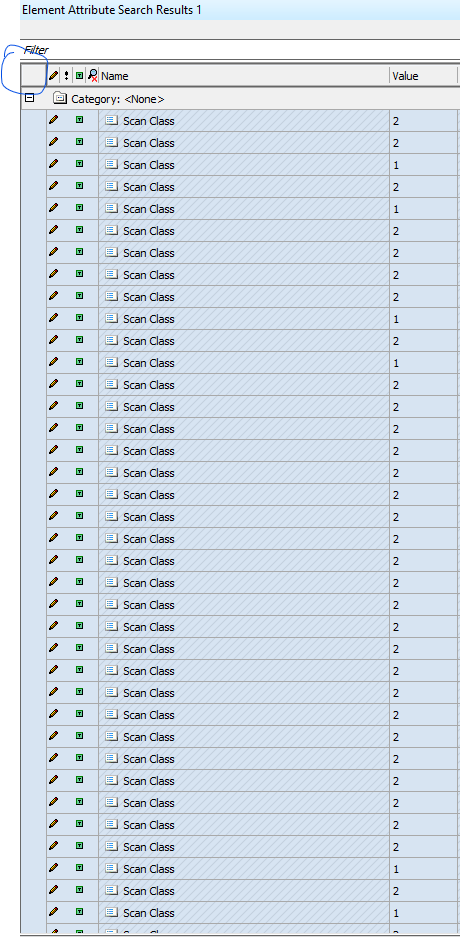 When performing a search in PI System Explorer, you can perform a "Select All" on the search results by left clicking on an empty gray section at the top. This section disappears after applying filter criteria, effectively removing the "Select All" feature.